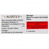 Each uncoated Aldo 2.5 Tablet contains: Amlodipine Besilate equivalent to Amlodipine 2.5 mg and Excipients q.s.