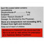 Each film coated Alzero 5 mg tablet contains Levocetirizine Dihydrochloride 5 mg and Excipients q.s.