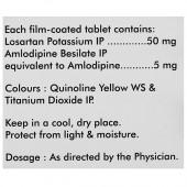 Each film coated Amlozaar tablet contains Losartan potassium 50 mg and Amlodipine Besylate equivalent to Amlodipine 5 mg.