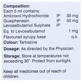 Ambroxol Hydrochloride 30 mg, Guaiphenesin 50 mg, Levosalbutamol Sulphate Eq. to Levosalbutamol 1 mg and Flavoured Syrupy base q.s.