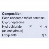 Biopron Tablet contains Cyproheptadine 4 mg, an antihistamine that helps treat allergic conditions such as sneezing, runny nose, watery or itchy eyes (allergic rhinitis and conjunctivitis), hives (urticaria), and other allergy-related symptoms. It is also used to stimulate appetite in individuals experiencing poor appetite or unexplained weight loss.