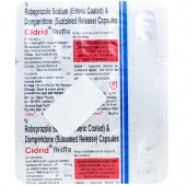 Cidrid capsule contains rabeprazole (a proton pump inhibitor) and domperidone (a prokinetic). It may interact with several drugs. Rabeprazole can reduce the absorption of medications that require stomach acid, such as ketoconazole, itraconazole, and iron supplements. Domperidone can interact with drugs that prolong the QT interval (e.g., amiodarone, fluconazole, clarithromycin), increasing the risk of serious heart rhythm problems. Combining Cidrid with antacids or other acid-reducing agents may alter its effectiveness. Always consult a doctor before combining it with other medications.