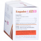 Take Empadot L 25/5 Tablet strictly according to your doctor’s instructions, following the prescribed dose and timing. Empadot L 25/5 Tablet should be swallowed whole and not to be chewed, or crushed, preferably at the same time each day. Do not stop or alter the dose of Empadot L 25/5 Tablet without consulting your doctor, as this may prevent you from achieving the desired outcome. If you are unsure about the administration procedures of Empadot L 25/5, consult with your doctor or pharmacist.