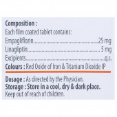 Empadot L 25/5 Tablet contains Empagliflozin, a potent (SGLT2) inhibitor and Linagliptin (DPP-4) inhibitor, which work together through two distinct mechanisms to manage blood sugar level.