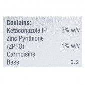 Ketoconazole: 2% w/w, Zinc Pyrithione (ZPTO): 1% w/w (as dispersion), Carmoisine Base: q.s.
