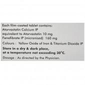 Each film-coated Fibrovas Tablet contains Fenofibrate 160 mg and Atorvastatin Calcium equivalent to Atorvastatin 10 mg.