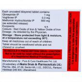 Each uncoated bilayered tablet contains: Glimepiride 1 mg, Voglibose 0.3 mg, Metformin Hydrochloride (as extended release) 500 mg and Excipients q.s.