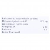 Each uncoated bilayered tablet contains: Metformin Hydrochloride 1000 mg (as prolonged-release form), Glimepiride 2 mg, and Excipients q.s.