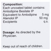 Each uncoated tablet contains- Amlodipine Besilate Equivalent to Amlodipine: 5 mg, Atenolol: 50 mg and Excipients q.s.