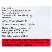 Each film coated tablet contains- Atorvastatin Calcium equivalent to Atorvastatin: 40 mg & Excipients q.s.