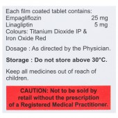 Each film coated tablet contains- Empagliflozin: 25 mg and Linagliptin 5 mg.