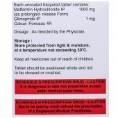 Each uncoated bilayered tablet contains- Metformin Hydrochloride (as prolonged-release form): 1000 mg and Glimepiride: 1 mg