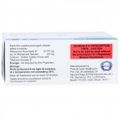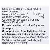 Each film coated prolonged-release tablet contains- Metoprolol Succinate: 23.75 mg equivalent to Metoprolol Tartrate: 25 mg.