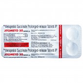 Jitometo 50 Tablet is an antihypertensive medicine, prescribed alone or in combination with other medicines to treat high blood pressure (hypertension). It is also used for long-term treatment of chest pain (angina), chronic heart failure, irregular heartbeats, and heart conditions that cause palpitations. Additionally, Jitometo 50 Tablet helps prevent migraines and reduces the risk of further heart damage or heart attacks after a previous one.