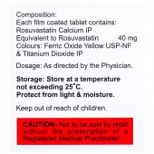 Each film coated tablet contains- Rosuvastatin Calcium equivalent to Rosuvastatin: 40 mg and Excipients q.s.