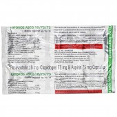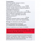 Each hard gelatin capsule contains- Rosuvastatin Calcium Equivalent to Rosuvastatin (as light orange coloured film coated tablet): 10 mg, Clopidogrel Bisulphate Equivalent to Clopidogrel (as two light brown coloured film coated tablets each containing Clopidogrel 37.5 mg): 75 mg and Aspirin (As gastro-resistant enteric-coated pellets): 75 mg.