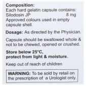 Each hard gelatin capsule contains- Silodosin: 8 mg.