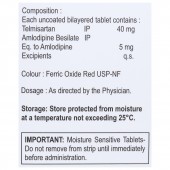 Each uncoated bilayered tablet contains- Telmisartan: 40 mg, Amlodipine Besilate Equivalent to Amlodipine: 5 mg and Excipients q.s.