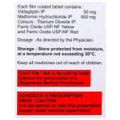 Each film coated tablet contains- Vildagliptin: 50 mg and Metformin