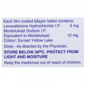 Each film-coated Lezyncet M Tablet contains: Montelukast Sodium equivalent to Montelukast 10 mg, Levocetirizine Hydrochloride 5 mg and Excipients q.s.