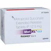 Met XL 12.5 Tablet is an antihypertensive medicine, prescribed to treat high blood pressure (hypertension), chest pain (angina), chronic heart failure, irregular heartbeats, and heart conditions that cause palpitations. Met XL 12.5 Tablet also helps prevent migraines and reduces the risk of further heart damage or heart attacks after a previous one.