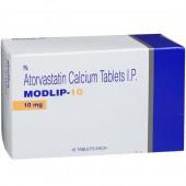 Each film coated Modlip 10 Tablet contains: Atorvastatin Calcium equivalent to Atorvastatin 10 mg and Excipients q.s.