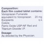 Each film coated tablet contains: Vonoprazan Fumarate equivalent to Vonoprazan: 20 mg and Excipients q.s.