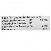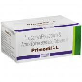 Each film coated Primodil L tablet contains Losartan potassium 50 mg, Amlodipine Besylate equivalent to Amlodipine 5 mg and Excipients q.s.