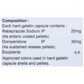 Each hard gelatin capsule contains- Rabeprazole Sodium: 20 mg (As enteric coated pellets), Domperidone: 30 mg (as sustained release pellets) and Excipients q.s.
