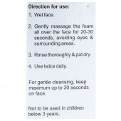 - Gently massage the foam all over the face for 20-30 seconds, avoiding eyes & surrounding areas.