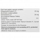 Each hard gelatin capsule contains- Rabeprazole Sodium: 20 mg (As enteric coated pellets), Domperidone: 30 mg (as sustained release pellets) and Excipients q.s.