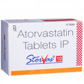 Storvas 10 Tablet is a cholesterol lowering medicine from the statin group. It helps to lower the 'bad' cholesterol and triglyceride levels, while increasing 'good' cholesterol in the blood when diet and exercise alone are not enough to manage cholesterol levels. Too much bad cholesterol can block blood vessels, increasing the risk of chest pain, heart attacks, and strokes. By lowering overall cholesterol and improving lipid balance, Storvas 10 reduces the risk of serious cardiovascular problems.
