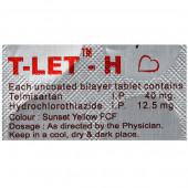Each uncoated bilayer T Let H tablet contains Telmisartan 40mg and Hydrochlorothiazide 12.5mg.
