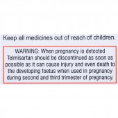 Label Warning: When pregnancy is detected, Telmisartan should be discontinued as soon as possible as it can cause injury and even death to the developing fetus, when used during second and third trimester of pregnancy.