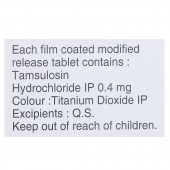 Each film coated modified release tablet contains: Tamsulosin Hydrochloride : 0.4 mg.