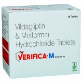 Each film coated Verifica M 50 mg/ 500 mg tablet contains Vildagliptin 50 mg and Metformin Hydrochloride 500 mg.Use of Verifica M 50 mg/ 500 mg Tablet: