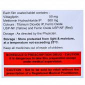 Each film coated Vilglip M tablet contains Vildagliptin 50 mg and Metformin Hydrochloride 500 mg.
