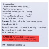 Each film coated tablet contains: Vonoprazan Fumarate equivalent to Vonoprazan: 20 mg and Excipients q.s.