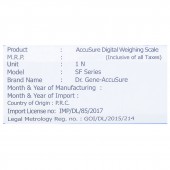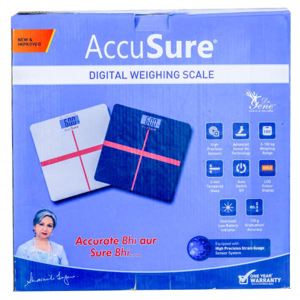 Product Information - AccuSure Digital Weighing Scale provides accurate information. This personal scale is designed in silver coated safety glass which is tempered for extra toughness. Boost you weight management regime with this scale at home. Accusure SF(B-18) will make a wonderful addition to your weight management schedule. You also get a complete user guide to know more about the product.