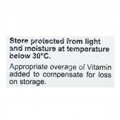 Appropriate overages of vitamin added to compensate for loss on storage.