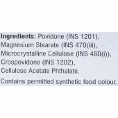 Povidone (INS 1201), Magnesium Stearate (INS 470(iii), Microcrystalline Cellulose (INS 460(i)), Crospovidone (INS 1202), Cellulose Acetate Phthalate.