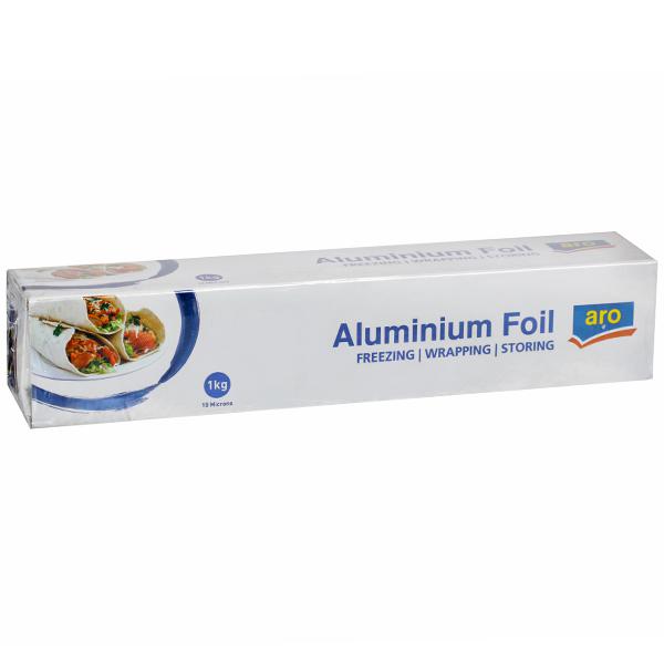 Aro aluminium foil made of food grade aluminium to pack & carry food, preserves eatables, wrap gifts, store perishables, freeze bake and grill to preserve warmth and keeping your foods fresh.