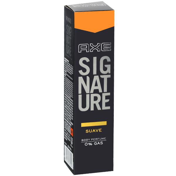 For the smooth impression you want to leave, Axe presents Axe Signature Suave Body Perfume, a fragrance with 3 times more perfume in every drop. This signature perfume has been steadily climbing the popularity charts of men who like their perfumes spicy, aromatic and exciting. It combines the intoxicating extracts of sassy mimosa with herbaceous and spicy notes of electrifying splendor. Stop waiting, carve your own niche, create your own suave style with Axe Signature Suave Body Perfume. Get your bottle right away! The Axe Signature range of body perfumes is inspired by the finest fragrances the world has to offer. These fragrances are stronger, last longer and chisels out your persona whenever you need to take the centre stage. It is the perfect accomplice for all your endeavours. So be it at a party, a business meeting or a date, while others will be merely good, you will strike an impression that won’t fade away. Making an impression is easier with the Axe Signature range.