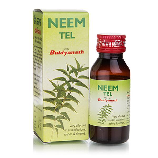 The all natural and herbal neem tel from Baidyanath is a powerful antiseptic and antifungal agent that performs multiple functions on the skin and hair. Neem reduces dandruff and flakes from hair and prevents scalp infections. It removes bacteria from the skin and prevents acne, pimples and blemishes. Neem is a potent antiseptic which can be used to treat wounds and marks as well. Apply on the affected area, alone or along with coconut and almond oil for best results. It comes in a 50ml bottle.