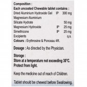 Dried Aluminium Hydroxide Gel: 300 mg, Magnesium Aluminium Silicate Hydrate: 50 mg, Magnesium Hydroxide: 25 mg, Simethicone: 25 mg, Excipients: q.s.