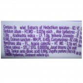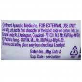 Extracts of Hedychium spicatum-RZ./RT., Santalum album-HT.Wd: 0.025 g each, Aloe barbadensis-Lf: 1.50 g., Azadirachta indica-Lf: 1.0 g, Vetiveria Zizanioides-RT: 0.50 g, Ocimum sanctum-WH.PL: 0.40 g, Curcuma longa-Rz: 0.30 g, Nymphaea alba-FL., Acacia catechu-HT.WD.: 0.15 g each, Crocous sativus-STL./STG.: 0.00005 g, Jasad bhasma (Zinc oxide): 3.50 g, Tankan amla (Boric acid): 0.80 g, Dugdha pashana (Talc): 6.0 g, DMDM Hydantoin, Ointment vehicle: q.s.