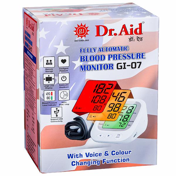 Dr. Aid Blood Pressure Monitor is a fully automatic blood pressure monitor that uses the oscillometric method for quick & reliable measurement of blood pressure. It comes with voice & colour changing function.