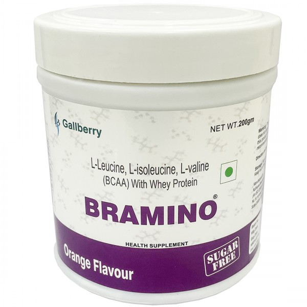 Bramino Sugar Free Orange Flavour Powder is a health supplement enriched with L-Leucine, L-isoleucin, L-Valine (BCAA) and Whey Protein