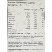 Energy: 196.67 Kcal, Protein: 30 g, Carbohydrates: 19.17 g, Total Sugar: 0 g, Added Sugar: 0 g, Fat: 0 g, Cholesterol: 0 mg, Sodium: 0 mg, BCAA: 52.75 g, (L-Leucine 3165 mg + L-Isoleucine 1582 mg + L-Valine 1582 mg), Whey Protein Isolate (90%): 33.33 g.