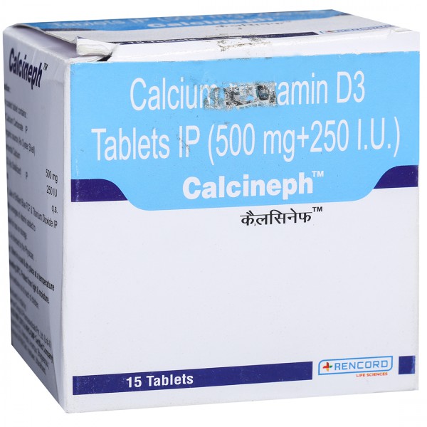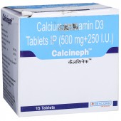 Calcineph Tablet contains two active substances Calcium and Vitamin D3 that primarily corrects calcium and vitamin d deficiency in the body. Calcium is an important constituent, needed by the body for healthy bones, teeth, and proper function of the heart, muscles, and nerves. In the meantime, Vitamin D3 helps the absorption of calcium by the intestine and its deposition in the bones. In combination, this supplement strengthens bones and lowers fracture risk in those with insufficient levels of calcium and vitamin D.